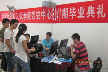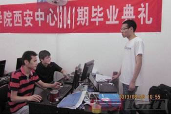 2013年08月28日,西安中心13041期學員在第一教室舉行了畢業典禮。出席本次畢業典禮的有:中心校長郭老師,項目指導劉老師,班主任老師楊老師,就業老師吳老師等。