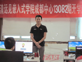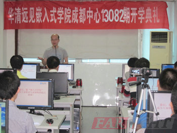 2013年9月2日,華清遠(yuǎn)見成都中心迎來了13082期的全體學(xué)員。當(dāng)天上午,13082期開學(xué)典禮在成都中心所在的四川大學(xué)大學(xué)科技園嵌入式實驗室三隆重舉行。成都中心校長陶老師,學(xué)術(shù)經(jīng)理潘老師,教學(xué)部馮老師,就業(yè)專員龔老師,班主任李老師以及13082期全體學(xué)員出席了本次開學(xué)典禮。
