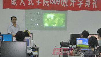 開學典禮在2013年9月25日上午9時許開始,首先是班主任秋老師對剛剛結束的C語言補習進行了簡單總結,并對這短時間大家的出勤表現給予了高度評價,希望大家能夠堅持下去,保證一個良好的學習習慣。同時秋老師再次強調講解班級管理規定,正所謂“沒有規矩不成方圓”,也希望同學們能夠遵守班級規定,培養自己、鍛煉自己團隊精神。