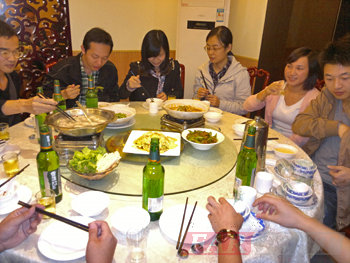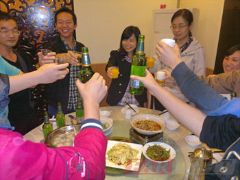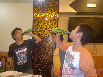 結束一天的游園,大家伙提議聚餐。于是乎,同學們來到了附近的飯店,點了滿滿一大桌的好菜,迫不及待的開吃啦。吃飽喝足,時間還早,大家的興奮勁啊,也還未散去,于是一行人,又來到了歡樂空間,一展歌喉。這一到包廂啊,平日里那些沉默寡言的同學們,立馬變了一個人一樣,真是令人大開眼界,大飽耳福,班里原來這么多多才多藝的能人啊,平時還真是沒有看出來。這邊的一伙完游戲喝酒,玩的不亦樂乎。那邊的幾個麥霸,干脆變成了開演唱會,無比的陶醉,也不管有幾個觀眾,完全沉醉其中無法自拔。包廂里的熱鬧和喧囂還在繼續,夜已深,依依不舍大家各自回家。