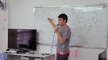 答辯依然在緊張地進行當中,各位答辯學員依次上臺演示自己四個月以來的學習成果,通過精心準備的PPT,流暢的表達,清晰的思路,與各位老師、同學一起分享自己的畢業成果與快樂。老師在臺下認真地傾聽學員們的展示,有針對性的、技術性的、專業性的提出有關的問題,并做出相關的建議與學員們交流。在解答一些學員問題時,答辯老師還親自上臺畫圖講解,讓學員們聽的頻頻點頭。畫圖講解更使原理形象化,可見老師與學員們注重的是動手能力與操作能力。答辯過程中,學員們表現得都非常精彩,思維敏捷,回答條理。