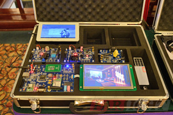 | 圖十三、華清遠(yuǎn)見圖書展臺(tái) | 圖十四、華清遠(yuǎn)見物聯(lián)網(wǎng)實(shí)驗(yàn)平臺(tái) |