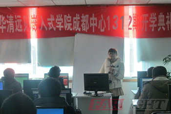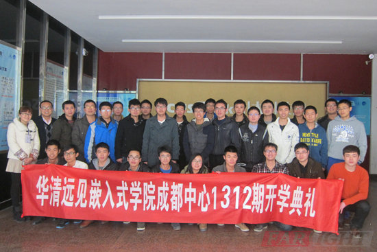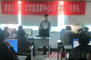 2013年12月16日,華清遠見成都中心迎來了1312期的全體學員。當天上午,1312期開學典禮在成都中心所在的四川大學大學科技園610教室隆重舉行。成都中心校長陶老師,學術經理潘老師,教學部尹老師、馮老師,就業專員龔老師,班主任李老師以及1312期全體學員出席了本次開學典禮。