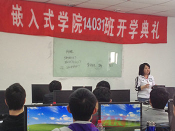 緊接著教學(xué)部孟老師為大家介紹嵌入式的課程體系 與學(xué)習(xí)方法。課程大體分三個階段四個部分:基礎(chǔ)準(zhǔn)備階段、應(yīng)用編程階段、底層開發(fā)階段、真實(shí)項(xiàng)目階段,還詳細(xì)地介紹了每一期學(xué)習(xí)的內(nèi)容、特點(diǎn)與任務(wù),特別是要注重動手能力,平時遇到問題要多思考,多交流,每個學(xué)習(xí)階段都有不同的側(cè)重點(diǎn)與學(xué)習(xí)任務(wù),這就希望大家上課能認(rèn)真聽講,課后多復(fù)習(xí)、多練習(xí),這樣更有助于大家的學(xué)習(xí) 。后,孟老師給予學(xué)員們在學(xué)習(xí)過程中提了幾點(diǎn)建議,希望學(xué)員們在學(xué)習(xí)過程中能勞逸結(jié)合,找準(zhǔn)學(xué)習(xí)方法,有目的,有計(jì)劃的學(xué)習(xí),課后學(xué)會鞏固,以一位準(zhǔn)嵌入式工程師標(biāo)準(zhǔn)來時刻要求自己。