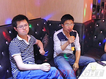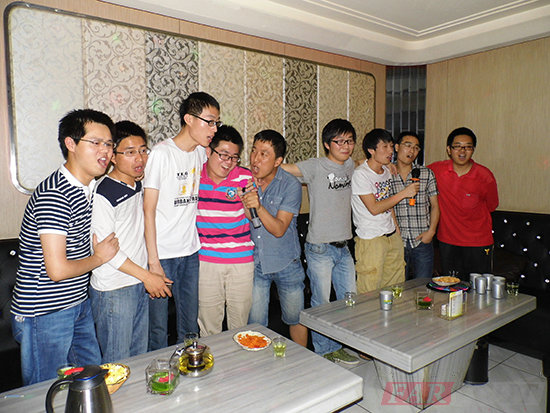 下午大伙一起去了KTV,在KTV里,大伙都喝著,聊著,就連平時不怎么說話的陳同學,都拿起麥克風唱個不停,一口氣唱了好幾首,大伙不時的送來歡樂的掌聲。