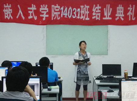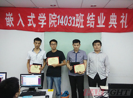典禮開始李老師在發(fā)言中肯定了學(xué)員們四個(gè)月的付出,指出通過(guò)四個(gè)月集中的學(xué)習(xí),養(yǎng)成了刻苦學(xué)習(xí)的好習(xí)慣。同時(shí),也對(duì)大家這段時(shí)間出現(xiàn)的問(wèn)題指正,希望大家引以為鑒,以后類似的錯(cuò)誤不要再犯,希望每位學(xué)員在后期就業(yè)過(guò)程中能夠互幫互助,多總結(jié),共同進(jìn)步,日后在工作崗位上仍然要有刻苦的精神,要具備抗壓的能力,面對(duì)生活及工作中的困難要有必勝的決心。希望14031期學(xué)員能夠堅(jiān)持自己的理想,能夠秉著平穩(wěn)的心態(tài),在嵌入式這個(gè)領(lǐng)域里持之以恒的做下去,祝愿各位學(xué)員早日成為嵌入式行業(yè)精英!