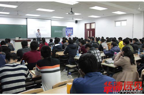 在苗老師精彩的講解之后,由華清遠(yuǎn)見15071班學(xué)員,飛思卡爾智能車全國大賽二等獎(jiǎng)獲得者張旭東同學(xué),分享了對(duì)嵌入式開發(fā)學(xué)習(xí)、職業(yè)規(guī)劃、智能車設(shè)計(jì)等體會(huì)。作為一名學(xué)長,為華北科技學(xué)院100多名同學(xué)帶去了很多嵌入式開發(fā)學(xué)習(xí)和就業(yè)的指導(dǎo),鼓舞同學(xué)們多多關(guān)注創(chuàng)客方面的知識(shí),多學(xué)習(xí)嵌入式等相關(guān)的技術(shù),為自己以后的就業(yè)打下基礎(chǔ)。