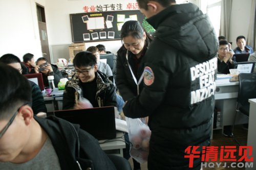 下午美麗的班主任老師前往班級給小伙伴們發放平安果。
