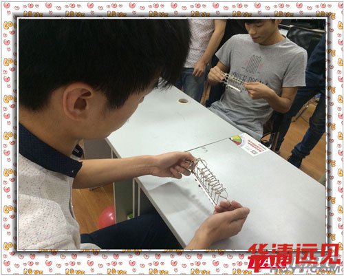 分好組之后就開(kāi)始了第一個(gè)游戲:巧手妙解九連環(huán)。先是由任老師宣讀了游戲規(guī)則,接下來(lái)經(jīng)過(guò)各小組商討推選出了參賽人員,經(jīng)過(guò)二十分鐘的激烈比拼,終顏值爆表組奪得勝利,失敗組以演唱歌曲的形式進(jìn)行了懲罰。