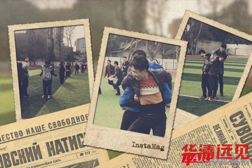 夕陽向操場灑下金輝,整個操場披上了蟬翼般的金紗,蒙上了神秘的色彩。陳老師組織大家拍張合影留念啦!