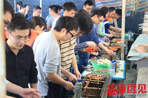 到了地點,看著已經準備好的燒烤工具,和新鮮的蔬菜、水果、肉類,以及各種各樣的啤酒飲料,口水都要流下來了。每個人都開始忙碌起來,大家互幫互助,像一群勤勞的小蜜蜂,一切都緊湊有序的進行著,整個園區里充滿了歡聲笑語。