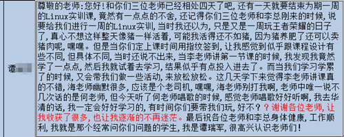這是實訓的后一天,我非常感謝老師,這幾天在老師的陪伴中過得很充實,沒有了一整天抱著手機玩游戲的狀態,也沒了一整天待在宿舍不知道要干嘛的無聊生活,說真的感覺大學這三年過的都不如這幾天充實,以往的狀態就是上課愛聽不聽,考試之前才抱佛腳,突擊幾天,然后不掛科就萬事大吉了。現在大三已經要過完了,自己也是在為以后找什么工作發愁,因為感覺好像什么都沒學會什么都不懂,直到你們突然出現給我們培訓這幾天,才對自己有了自信,對以后的人生有了一些新的認識。