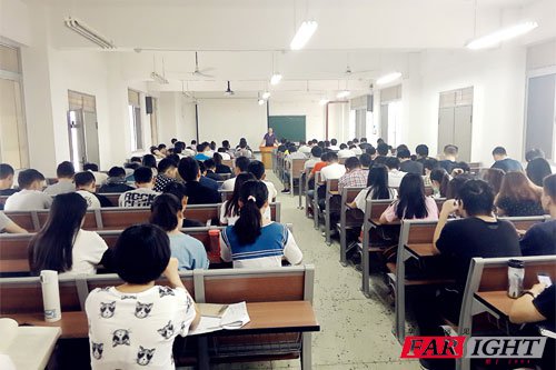 圖為:集美大學楊副院長致詞 8:45分簽約儀式正式開始。 首先楊副院長攜全體師生歡迎華清遠見遠道而來的朋友,并表示非常期待此次合作共贏的簽約儀式。其會上說道:"校企合作是未來發展的另一種模式,這樣不僅僅是一場簽約,同時也為千千萬萬的莘莘學子的就業、學術深造鋪上了一條光明大道。