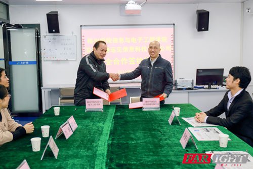 圖為:梧州學(xué)院的甘院長與深圳中心的梁校長簽約照片 9時(shí)梧州學(xué)院舉行簽約儀式正式開始,參會人由梧州學(xué)院信息工程學(xué)院甘院長與貴院校與華清遠(yuǎn)見梁校長、渠道經(jīng)理劉老師,教務(wù)部張老師參加,此次簽約又將迎來互惠互利,合作共贏的大好局面。 會上甘院長攜全體師生歡迎華清遠(yuǎn)見遠(yuǎn)道而來的朋友,并表示非常期待此次合作共贏的簽約儀式。其說道:"校企合作是未來發(fā)展的一種模式,這樣不僅僅是一場簽約,同時(shí)也為千千萬萬的莘莘學(xué)子的就業(yè)、學(xué)術(shù)深造鋪上了一條寬闊大道。