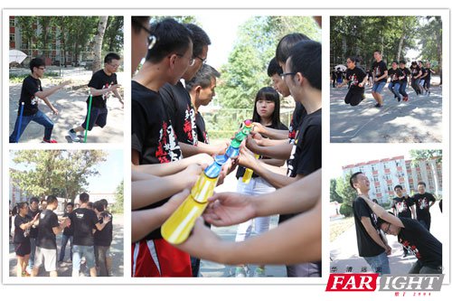 五月的風(fēng),是青春在激昂,五月的陽光,是我們一同追逐的夢想!在華清遠(yuǎn)見北京總部的校園里,星創(chuàng)客們成功完成了一個月的學(xué)習(xí)生活。為了讓星創(chuàng)客們在學(xué)習(xí)之余得到綜合素質(zhì)的鍛煉和提升,5月29日下午,籌備已久的星創(chuàng)客素質(zhì)拓展活動在學(xué)校操場開始了! 賽前破冰小熱身 happy指數(shù):三顆星 按照慣例呢,賽前當(dāng)然要來個熱身活動來舒展舒展筋骨啦!由依次報(bào)數(shù)字123產(chǎn)生的三支小隊(duì)分列站好,準(zhǔn)備開始熱身賽! “螃蟹一只爪八個,兩頭尖尖這么大個兒,眼一瞪呀脖兒一縮,爬呀爬呀過山河!”遠(yuǎn)處的朋友都看過來,這里是首屆蟹王PK賽!石頭剪刀布,贏了繼續(xù)挑戰(zhàn)其他隊(duì)伍,輸了就站到贏家隊(duì)伍后面,后一路贏到底就是那個大蟹王啦!開場游戲雖然簡單,但瞬間引爆現(xiàn)場氣氛啊有木有!