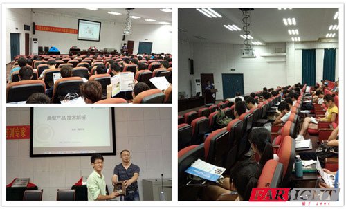 圖為:華清遠見橫幅與桂電級實驗教學樓合作 下午4點30分,由華清遠見易總監在實驗樓舉行高校巡回技術講座,易老師不僅僅給大家講述嵌入式及移動互聯的發展,還不斷拿出各種華清研發項目,比如WIFI音箱、智能藥盒、無人機等等展示給大家,告訴同學們如何利用大學空閑生活和僅有的知識及技術,做出現在市場非常時尚流行的產品。不少本科生以及研究生連連稱贊。易老師同時還提出一個互聯網的思維方式“羊毛出在牛身上,豬買單”。比如:你是個做智能醫藥盒的,在傳統思維方式里面,你可能就是把智能醫藥盒做出來賣掉,但是在互聯網時代,你不僅僅賣醫藥盒,還要不斷收集用戶日常吃藥情況等數據,當你收集到足夠的大數據之后,你可以和藥品生產商合作,當你客戶生病之后,你可以給出準確的診斷,然后推薦客戶用藥。從而就完成了,不僅僅只是賣醫藥盒的公司,而且連帶看病賣藥一起,從而增加你企業核心競爭力。
