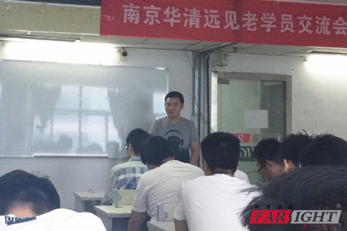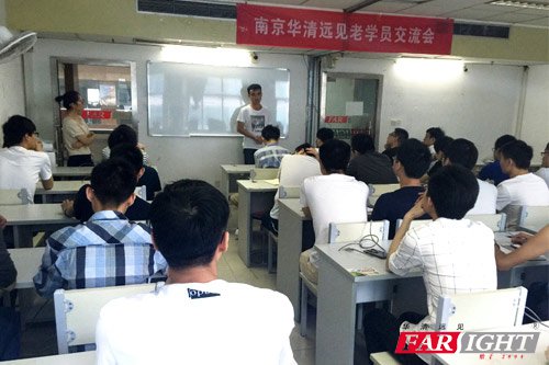 七月恍如仙境,令人心馳神往。望不盡的莽莽蒼蒼,涌涌蕩蕩;望不盡的頃千綠色,萬紫碧光。七月,景色迷人,楊柳矗立河水波光粼粼,馬路平坦整潔,教室飄逸夢想……在這么充滿希望的月份里, 9日下午我們成功的舉行了華清遠見南京分中心新老學員經驗交流會。就業主管冀老師邀請了1402期學員陳同學,劉同學、1504班邱同學、1503班李同學,四位學員分別跟大家分享了他們在華清的學習心得,就業歷程及工作中的經驗體會。 活動于上午十點正式開始,由就業部冀老師主持,四位老學員在大家熱烈的掌聲中出場了,從在校學員的眼神中看得出大家對師兄的即將分享的經驗的渴望。