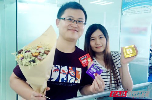 圖為:學員代表贈送的巧克力 約嗎??莫要臉紅,這可是三只松鼠特產的麻辣條哦~華清學員的特定版。哇偶,含拉子流一地呢