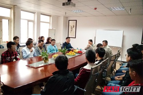 圖一:黃淮學院與學生座談 胡校長首先介紹了華清遠見的基本情況、新的教學成果和研發成果并帶黃淮學院們參觀了武漢中心的辦公區和教室。接著,胡校長和黃淮學院的與來自黃淮學院在華清遠見武漢中心實訓的學生親切座談,首先由姚書記開場,張副書記對實習情況,實習日記進行詳細說明,后由教研主任孫老師就畢業論文進行詳細介紹。在介紹完需要的工作后,與學生的實訓情況和生活住宿進行親切座談,學生積極提問,中間武漢中心的老師還給大家準備了水果,氣氛和諧融洽。