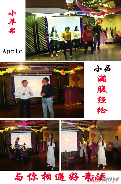 此次聯(lián)歡會(huì)各部門(mén)帶來(lái)了形式各異、讓人目不暇接的表演。有舞蹈、小品、相聲、合唱、舞臺(tái)劇等節(jié)目,五彩紛呈,中間還穿插了抽獎(jiǎng)環(huán)節(jié),隨著歡樂(lè)獎(jiǎng)、三等獎(jiǎng)、二等獎(jiǎng)、一等獎(jiǎng)、特等獎(jiǎng)的抽取,年會(huì)不斷的被帶進(jìn)高潮。 年會(huì)不僅僅給大家?guī)?lái)了歡聲笑語(yǔ),同時(shí)也讓同事之間的心更加貼近,歌聲、掌聲、歡呼聲一直在會(huì)場(chǎng)蕩漾。整個(gè)年會(huì)的氣氛跌宕起伏,高潮不斷,呈現(xiàn)華清這個(gè)大家庭的歡樂(lè)與和諧。