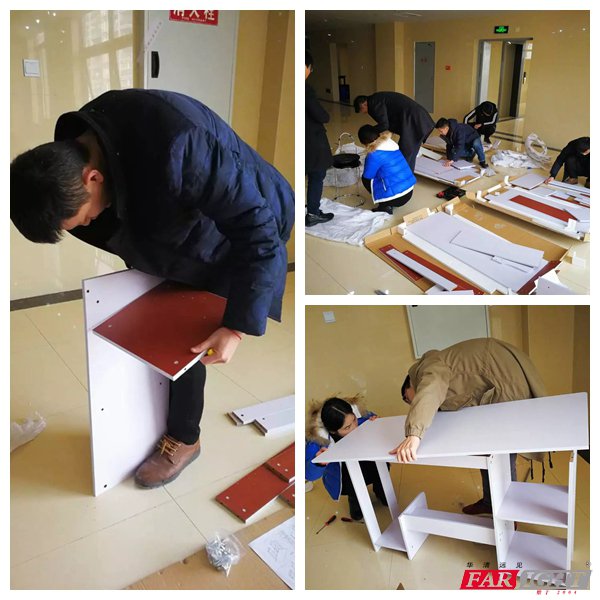 (圖:組裝卓成品) 現在萬事俱備只欠東風,只等大神們牟足了勁往里搬桌子拖椅子了,在朱老師的帶領下,男生們井然有序的開始搬桌子,大家齊心協力,各司其職,女生也都做自己力所能及的事,以期能早日在新的辦公室里工作。 經過全體員工四個多小時的通力合作,終于是守得云開見月明,辦公室又重新布置好了,是不是看上去窗明幾凈,更加高大上了呢!