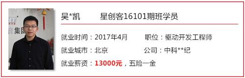 說這么多,泥萌想知道他們的具體就業薪資是多少嗎?下面來看看星創客16101期班的明星就業學員吧!可不要愛上他們哦~ 注意!前方有月薪15k、13薪、16薪的大神出沒! ![]() ![]() ![]() ![]() ![]() ![]() ![]() ![]() ![]() ![]() ![]() ![]() ![]() 這些大神們,有的在一線城市大展宏圖,有的在二三線城市奮力拼搏,不管大家身在何方,華清遠見星創客出品的,必屬精品!