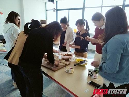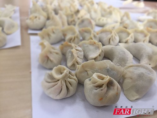 李校長(zhǎng)親自為我們和面、搟面皮,姑娘們紛紛動(dòng)手包餃子