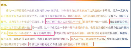 此次實(shí)訓(xùn)同學(xué)們能將理論知識(shí)融會(huì)貫通,將所學(xué)知識(shí)應(yīng)用在嵌入式智能小車開發(fā)上,激發(fā)了他們對(duì)嵌入式技術(shù)的研發(fā)熱情,為今后工作或者創(chuàng)業(yè)提供了好的方向和知識(shí)儲(chǔ)備,同時(shí)激勵(lì)學(xué)生們不斷提高自我專業(yè)素養(yǎng),熟練掌握專業(yè)技能,為以后就業(yè)奠定堅(jiān)實(shí)基礎(chǔ),希望同學(xué)們可以越來越優(yōu)秀。