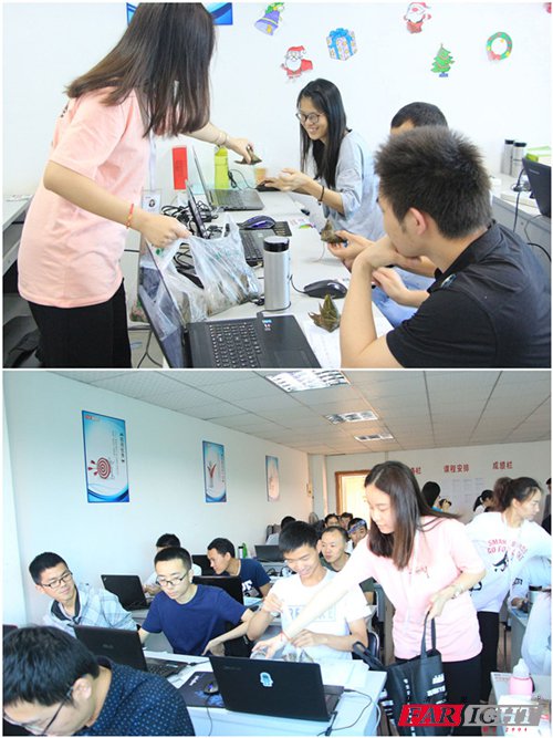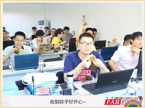 濃情五月,又是一年一度粽子飄香、艾煙裊裊的端午佳節。 2017年5月25日,在端午節即將來臨之際,華清遠見成都中心的老師們一大早就提著一袋袋熱騰騰的粽子走進了各個教室,來到學員們中間,將粽子一一送到了各位學員的手里,并向大家送上節日的問候,用這種特殊的方式讓同學們提前過端午。學員們紛紛表達著對老師的感謝,教室里一片歡聲笑語,大家都沉浸在節日的歡快氛圍里。 ![]() ![]() 端午節吃粽子,這是人民的傳統習俗了。收到粽子的同學們,臉上笑容不斷。很多同學拿到粽子后迫不及待地剝開粽子葉,吃了起來。 ![]() ![]() 小小的粽子,里面包裹著滿滿的師生情誼。粽子雖然值不了多少錢,但讓同學們在緊張的學習中感受到了華清的關心和溫暖。