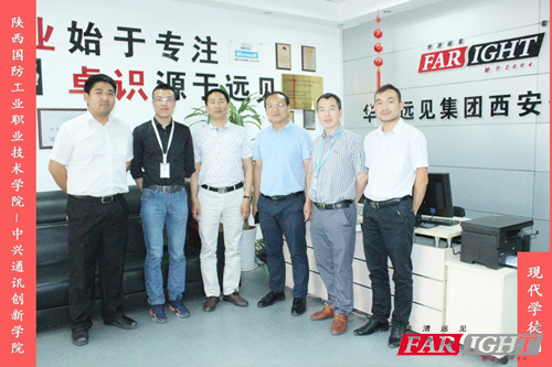 2017年5月25日,陜西國防工業職業技術學院——中興通訊創新學院的郭院長,常務副院長王院長,培華學院中興學院的院長助理張老師蒞臨華清遠見西安中心,就人才培養合作方案進行了討論。會上,初步達成培養意向,雙方決定以“校企合作憑借現代學徒制助力人才培養”作為校企合作起點,希望可以攜手為企業培養實用型人才。