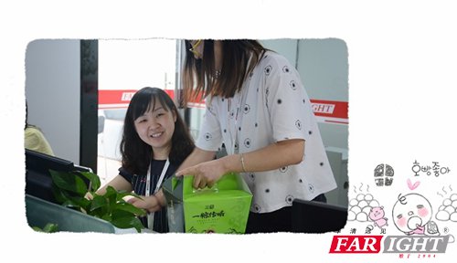 可愛的李老師將粽子分發(fā)到員工的手上,每箱粽子都有不同的口味,臘肉的、玉米的、蜜棗的等等,一種口味一份祝福。