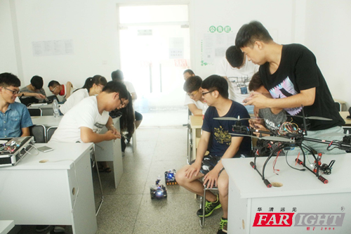(張老師總結) 接著,我司嵌入式講師宋老師帶領學生們了解智能小車、四軸飛行器,講述它們和基于其他單片機的不同。你問我答,輕松調動參觀現場和學什么學習的積極性。