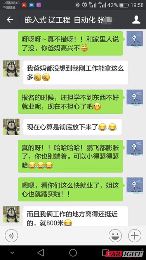 大家還記得上期那個(gè)去杭州不到兩天時(shí)間就找到工作的華清小網(wǎng)紅嗎?這不,時(shí)隔不久,他的小伙伴也發(fā)來喜訊了,兩家公司竟然只有短短800米的距離,華妹想問你倆是照著1000米以內(nèi)的距離投的簡歷嗎?難道有什么“奸情”,哦不,友情?不過,看到你倆現(xiàn)在過得這么幸福,華妹也甚感欣慰啊! 張同學(xué)也高興地說,父母之前一直擔(dān)心我能不能找到工作,但沒想到這么快找到了,薪資還遠(yuǎn)遠(yuǎn)超過他們的預(yù)期,現(xiàn)在懸著的心總算徹底放下來了,非常感謝華清遠(yuǎn)見,要不然自己現(xiàn)在還不知道什么樣子呢。 這里有截圖哦,不信你看。