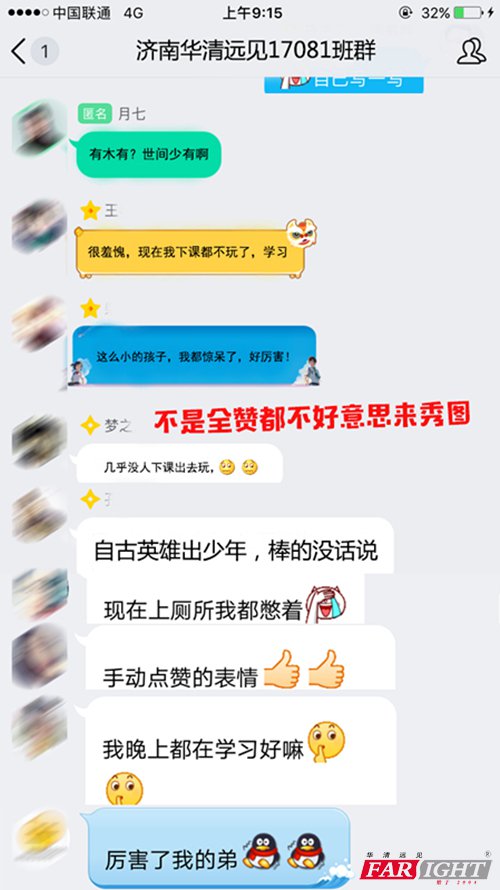 聽到了這個消息后,轟動了整個濟南華清遠見兩棟樓層的所有學生,17081班教室人數更是爆滿,小家伙被火速圍觀。(小伙伴們都驚呆了)