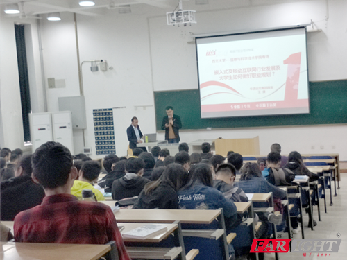 為了幫助同學們了解目前行業(yè)的新動態(tài)從而幫助他們更好的規(guī)劃自己的學業(yè)與職業(yè),2017年10月23日,西北大學特邀請華清遠見的老師們,為西北大學信息科學與技術學院的計算機科學與技術、電子信息工程、物聯(lián)網(wǎng)工程、電子科學與技術、微電子等專業(yè)大二學生共400余人,舉辦了以嵌入式和移動互聯(lián)網(wǎng)行業(yè)發(fā)展及大學生職業(yè)規(guī)劃為主題的講座。