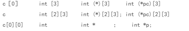 char *a[3] char *(*)[3] char *(*p)[3];