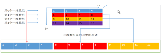 行下標確定在哪一個一維數組中,列下標確定在一維數組中的哪一個元素
