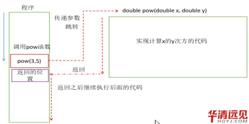 一旦程序中包含其他函數(shù)的調(diào)用(使用),執(zhí)行到對(duì)應(yīng)的函數(shù)調(diào)用的語句時(shí),跳轉(zhuǎn)到對(duì)應(yīng)的函數(shù)執(zhí)行,執(zhí)行完畢后會(huì)返回調(diào)用的語句的下一條語句繼續(xù)執(zhí)行