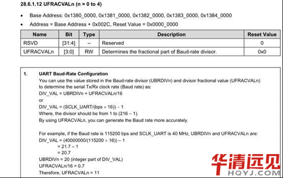公式:DIV_VAL = (SCLK_UART/(bps *16))- 1 芯片手冊上有