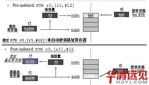 前索引(自動更新基址寄存器)先加后寫,++i 先移地址在寫值后索引,先寫入后加,i++ 先寫值后移地址