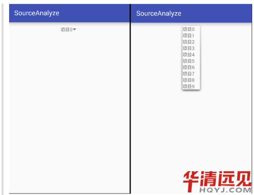 </LinearLayout> MainActivity的代碼 package org.skxy.www.sourceanalyze; import android.os.Bundle; import android.support.v7.app.AppCompatActivity; import android.view.View; import android.widget.AdapterView; import android.widget.Spinner; import android.widget.Toast; import java.util.ArrayList; import java.util.List; public class MainActivity extends AppCompatActivity { @Override protected void onCreate(Bundle savedInstanceState) { super.onCreate(savedInstanceState); setContentView(R.layout.activity_main); /**Spinner主要用于下來菜單的選項,數據加載和綁定很類似Listview,但是應用場景不同*/ Spinner spinner = (Spinner) findViewById(R.id.spinner); final List<String> datas = new ArrayList<>(); for (int i = 0; i < 10; i++) { datas.add("項目" + i); } MyAdapter adapter = new MyAdapter(this); spinner.setAdapter(adapter); adapter.setDatas(datas); /**選項選擇監聽*/ spinner.setOnItemSelectedListener(new AdapterView.OnItemSelectedListener() { @Override public void onItemSelected(AdapterView<?> parent, View view, int position, long id) { Toast.makeText(MainActivity.this, "點擊了" + datas.get(position), Toast.LENGTH_SHORT).show(); } @Override public void onNothingSelected(AdapterView<?> parent) { } }); } } 適配器 package org.skxy.www.sourceanalyze; import android.content.Context; import android.view.LayoutInflater; import android.view.View; import android.view.ViewGroup; import android.widget.BaseAdapter; import android.widget.TextView; import java.util.ArrayList; import java.util.List; /** * ClassName : MyAdapter * Created by: skxy on 2016/11/22. * DES :適配器 */ public class MyAdapter extends BaseAdapter { List<String> datas = new ArrayList<>(); Context mContext; public MyAdapter(Context context) { this.mContext = context; } public void setDatas(List<String> datas) { this.datas = datas; notifyDataSetChanged(); } @Override public int getCount() { return datas==null?0:datas.size(); } @Override public Object getItem(int position) { return datas==null?null:datas.get(position); } @Override public long getItemId(int position) { return position; } @Override public View getView(int position, View convertView, ViewGroup parent) { ViewHodler hodler = null; if (convertView == null) { hodler = new ViewHodler(); convertView = LayoutInflater.from(mContext).inflate(R.layout.item, null); hodler.mTextView = (TextView) convertView; convertView.setTag(hodler); } else { hodler = (ViewHodler) convertView.getTag(); } hodler.mTextView.setText(datas.get(position)); return convertView; } private static class ViewHodler{ TextView mTextView; } } 條目布局 <?xml version="1.0" encoding="utf-8"?> <TextView xmlns:android="//schemas.android.com/apk/res/android" android:layout_width="match_parent" android:layout_height="match_parent">