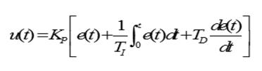 圖3 微分控制器曲線 微分反應了偏差信號的變化規律,或者說是變化趨勢,偏差的微分實際偏差的變化速率,變化越快,其微分絕對值越大。偏差增大時,其微分為正;偏差減小時,其微分為負。控制器輸出量的微分部分與誤差的微分成正比,反映了被控量變化的趨勢。根據偏差信號的變化趨勢來進行超前調節,從而增加了系統的快速性。Td值越大,超前控制作用就會越明顯,可以在做到提前控制。比例僅僅是偏差的放大增幅,表示當前調節參數,微分是預測偏差的變化,相當于提前加入了控制數據。在比例微分調節器中,能夠提前控制偏差,也有可能出現負值,避免了惰性系統的超調現象。 一、PID算法內容 2.1 PID算法選擇 PID算法中有比例積分調節(PI),比例微分調節器(PD),可根據系統要求進行選擇,通常為了改善調節品質,往往把比例、積分、微分三種作用組合起來,形成PID調節器。理想的PID微分方程為: