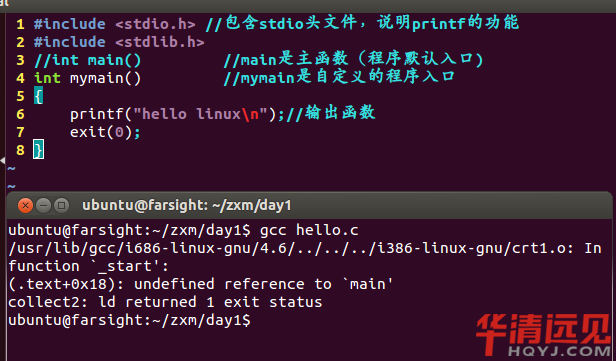 C語言標準在一開始(C90標準 5.1.2條),就規定了程序的執行環境。對于沒有操作系統的環境來說,C程序的入口函數是什么都可以(也就是說的在單片機的C程序里,或者在操作系統的底層代碼的C入口處,不需要是main函數)。 對于有操作系統的環境來說(C入門者學習C的環境),C程序的入口是main函數。而且聲明為以下兩者之一 int main(void); int main(int argc, char * argv[]); 對于 操作系統的執行環境的具體實現來說,鏈接器會把“你寫的C程序(以main開頭)”和另外的啟動程序相鏈接,而那些啟動程序里面會引用你寫的main函數。這樣從程序員的視角來看,“C程序的入口”是main。 但是如果我們要指定我們的程序的入口為mymain 時,在linux下編譯直接出現undefined reference to `main'的錯誤