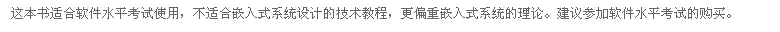 本書內容豐富,結構合理,概念清晰。既可作為全國計算機技術與軟件專業技術資格(水平)考試中嵌入式系統設計師級別的考試用書,供有關考生學習使用,也可以作為本科生嵌入式系統相關課程教材或培訓用書使用。