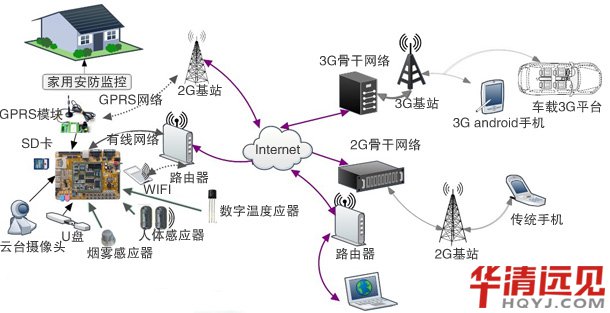 遠(yuǎn)程安防監(jiān)控項目功能介紹,此系統(tǒng)分為服務(wù)端和客戶端2個部分,其中服務(wù)端由ARM作為主控,操作系統(tǒng)采用嵌入式LINUX實現(xiàn),它通過實時采集紅外、溫度、煙霧探頭以及USB攝像頭的的數(shù)據(jù),通過互聯(lián)網(wǎng)將數(shù)據(jù)發(fā)送到客戶端進(jìn)行顯示和告警,客戶端由PC,傳統(tǒng)手機(jī)和比較新的3G手機(jī)相互比較獨(dú)立的幾個部分組成。