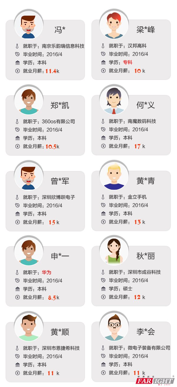 找工作常說金三銀四,在這個時間段企業招聘風風火火,本身嵌入式人才又很難求,聽就業老師說,遇到過學員剛入職一家公司,就遇到更好待遇公司挖人! 學員一直是供不應求的階段。 ![]() 圖:軟通動力HR在要人 當然就業雖簡單,但如何能高薪就業才是我們成千上萬學員追求的,因此本月又有哪些就業好榜樣代表上榜呢?讓我們目光投向下面的榜單。 ![]() 附:華清遠見教育科技集團四月份部分就業信息 ![]() 能上榜的同學薪資并非唯一標準,他們有很多學前基礎并不佳,也非名校,但憑借著自己辛苦的學習,4個月可以說是華麗轉身,有的進入了知名企業,有的薪資更是甩掉身邊大學同學幾條街。祝愿他們在未來的嵌入式路上越走越好! 相關資訊