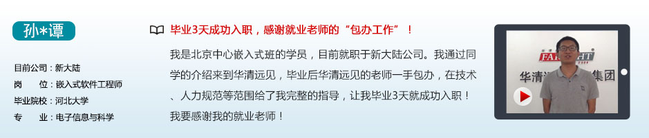 通過這四個月的學習,學到的東西非常多。老師非常盡職盡責,在后一段時間里接觸了幾個大的項目,嵌入式學習哪家強,成都華清遠見來幫忙。