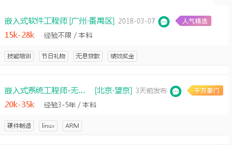 嵌入式就業前景廣闊,保險行業、醫療行業、金融行業、車載導航、智能農業等多種行業均可用到它!正因如此,市場對嵌入式方向的人員需求逐漸增多,薪資也是水漲船高,尤其是嵌入式工程師。