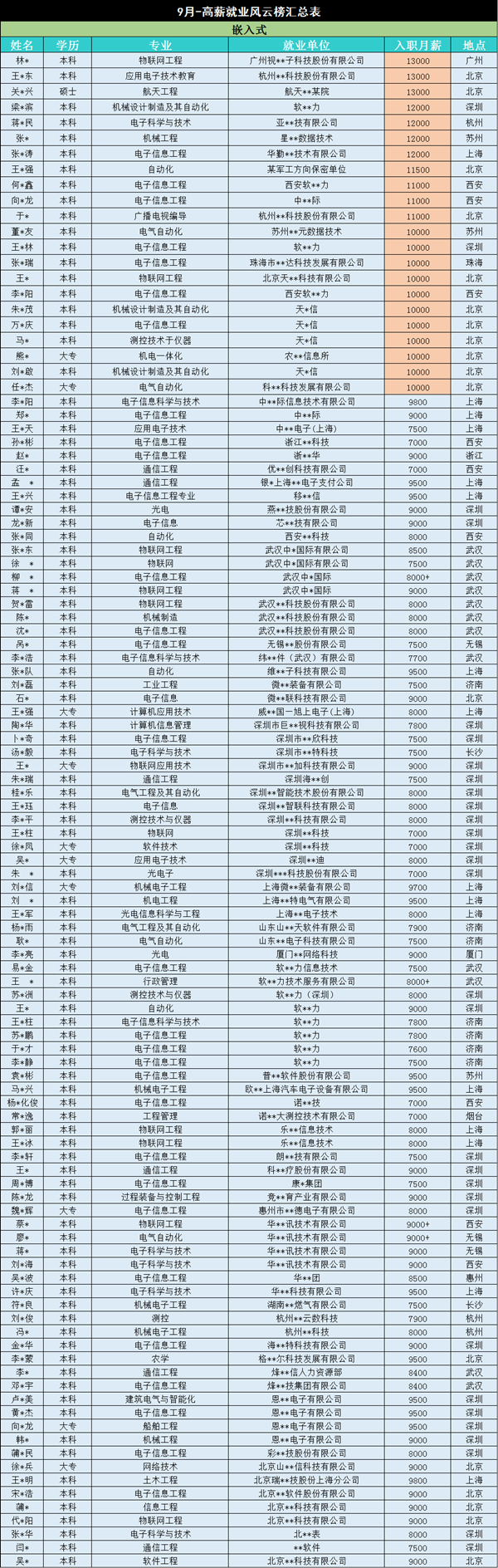 嵌入式9月高薪就業(yè)榜霸氣登場(chǎng) 70%以上學(xué)員月薪超8000!