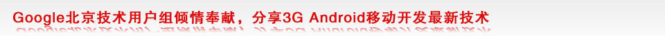 | 北京谷歌技術用戶組將在12月11日(周六)下午1:00—5:00在北京谷歌公司總部舉辦一場3G Android移動開發新技術專題講座活動,培訓講座中將分別通過三個專題與眾多嵌入式開發專業人士及技術愛好者一起分享3G Android移動開發新技術,以大家進入手機開發領域。 |